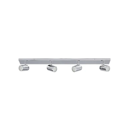 De Dejan Chroom Plafondlamp heeft een moderne en stijlvolle uitstraling met zijn eenvoudige ontwerp en glanzende verchroomde oppervlak, wat zorgt voor een mooie glans in de kamer. De plafondlamp is samengesteld uit een platte, rechthoekige Ophangbeugel en vier schijnwerpervormige spots met een opaalwitte afdekking aan het uiteinde waar het licht uit kan stromen. Dit ontwerp zorgt voor directe en gerichte verlichting die ideaal is voor sfeerverlichting in de kamer. Tegelijkertijd zorgt het matte oppervlak van de afdekking ervoor dat het licht niet verblindt. Elke spot kan onafhankelijk van de andere worden gedraaid, zodat de richting en de intensiteit van het licht kunnen worden bepaald.