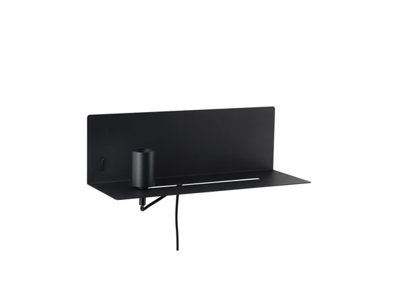 Devara Wandlamp Mat Zwart is een slimme 2-in-1 die lichtbron en opbergruimte combineert in één creatie. Het Statief van de lamp is uitgerust met een slimme plank die naast de lichtbron opbergruimte biedt. Omdat het armatuur ook een Ingebouwde USB-poort heeft voor het opladen van elektronische apparaten zoals smartphones en tablets, vinden deze tijdens het opladen hun natuurlijke plaats op de plank. Het midden van het schap heeft een smalle gleuf die het mogelijk maakt om de lichtbron te verplaatsen en zo de positie van het licht aan te passen. Om deze reden is de Devara wandlamp ideaal voor montage tussen fauteuils, banken en bedden.