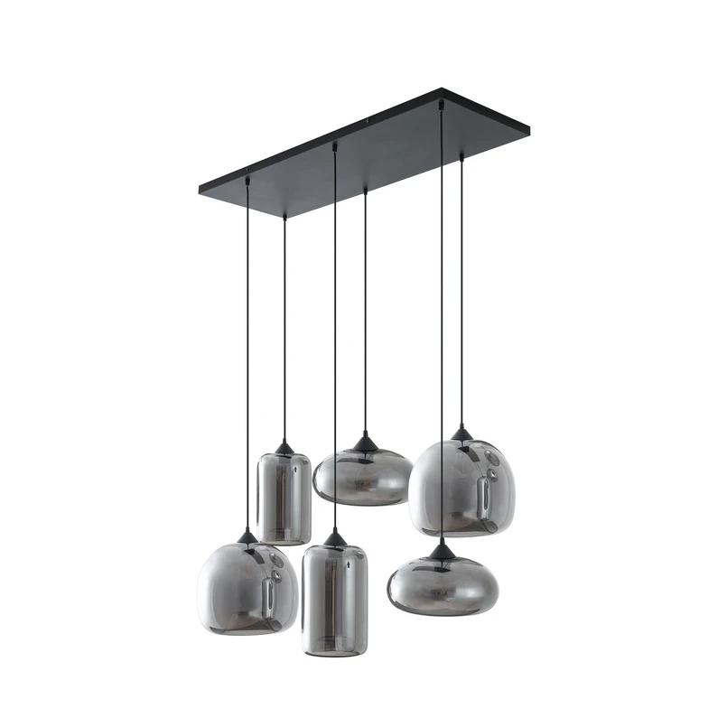 Marla hanglamp, 6-lamps, glas, rookgrijs - Lindby
