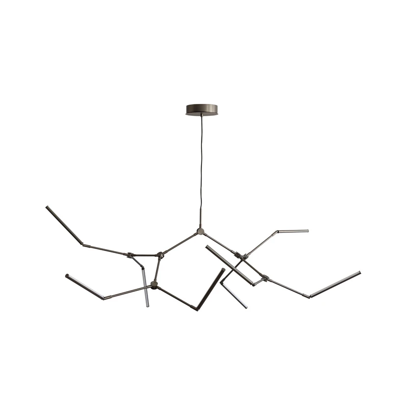 De 8-lamps LED kroonluchter Stick van 101 Copenhagen combineert minimalistisch design met moderne functionaliteit. Hij is gemaakt van aluminium en acryl en overtuigt door zijn strakke vormgeving en de acht flexibel verstelbare armen. De geïntegreerde LED-lichtbron zorgt voor een gelijkmatige, energiezuinige verlichting en creëert een aangename sfeer in elke ruimte.