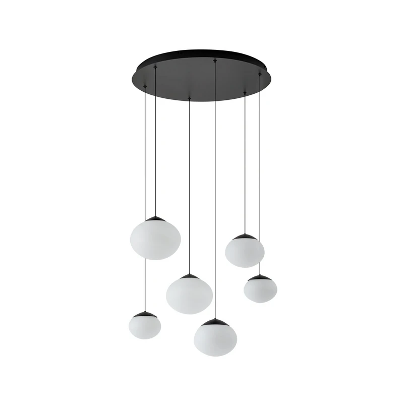 Tivar LED hanglamp, 6-lamps, zwart/wit, glas - Lucande Levertijd: 8 - 11 weken